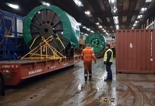 Goederen werden per MAFI aan boord gereden met bestemming Alexandria.