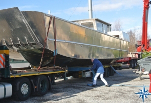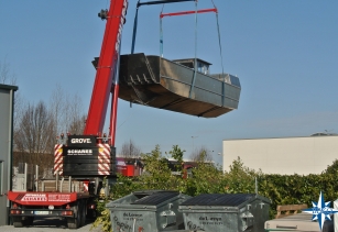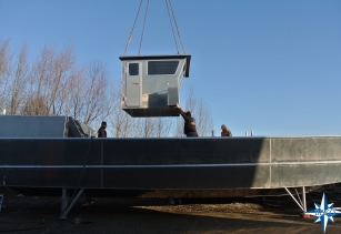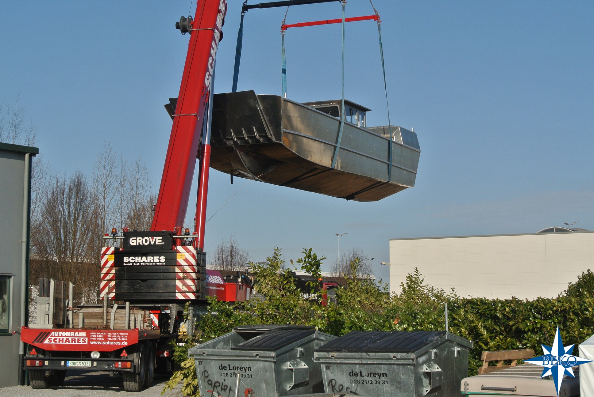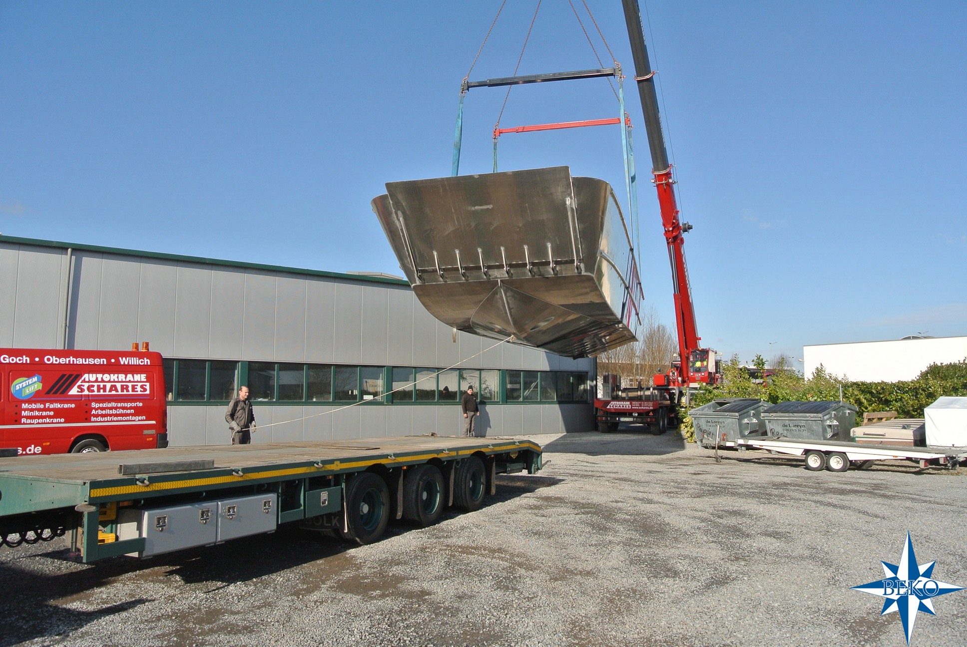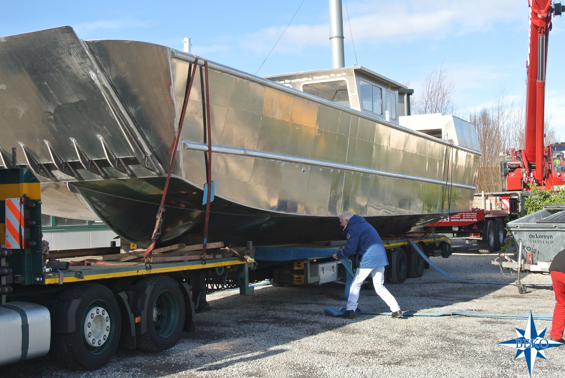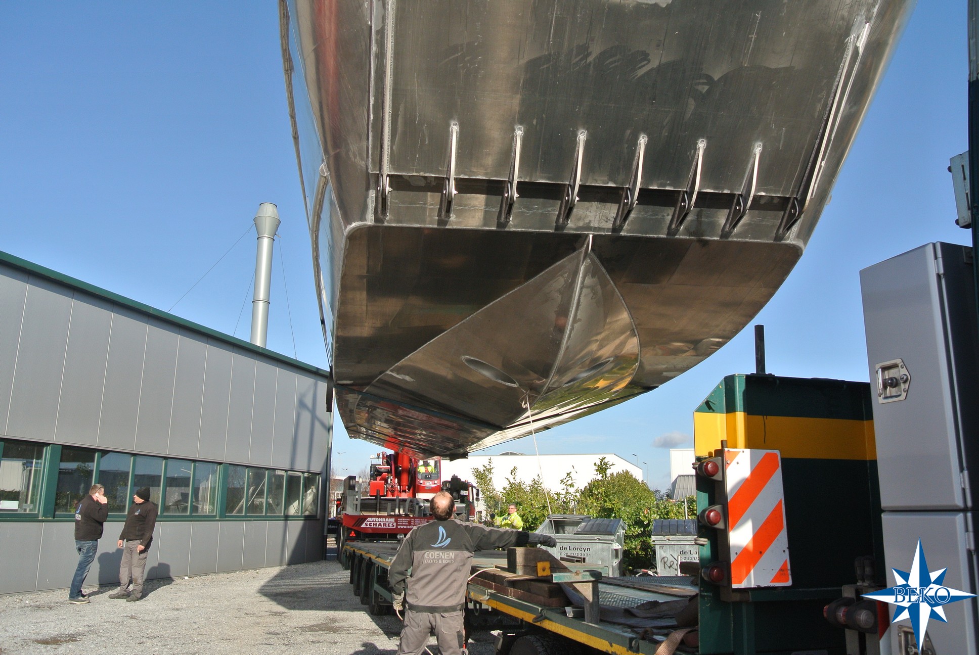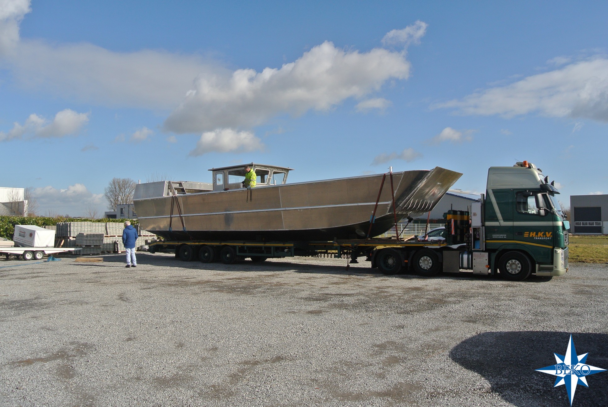 BEKO heeft het transport verzorgt van een casco van L x B x H 14,97 x 4,46 x 3,30 mtr en een gewicht van 8 ton van Kleve Duitsland naar Skappelskar Zweden.