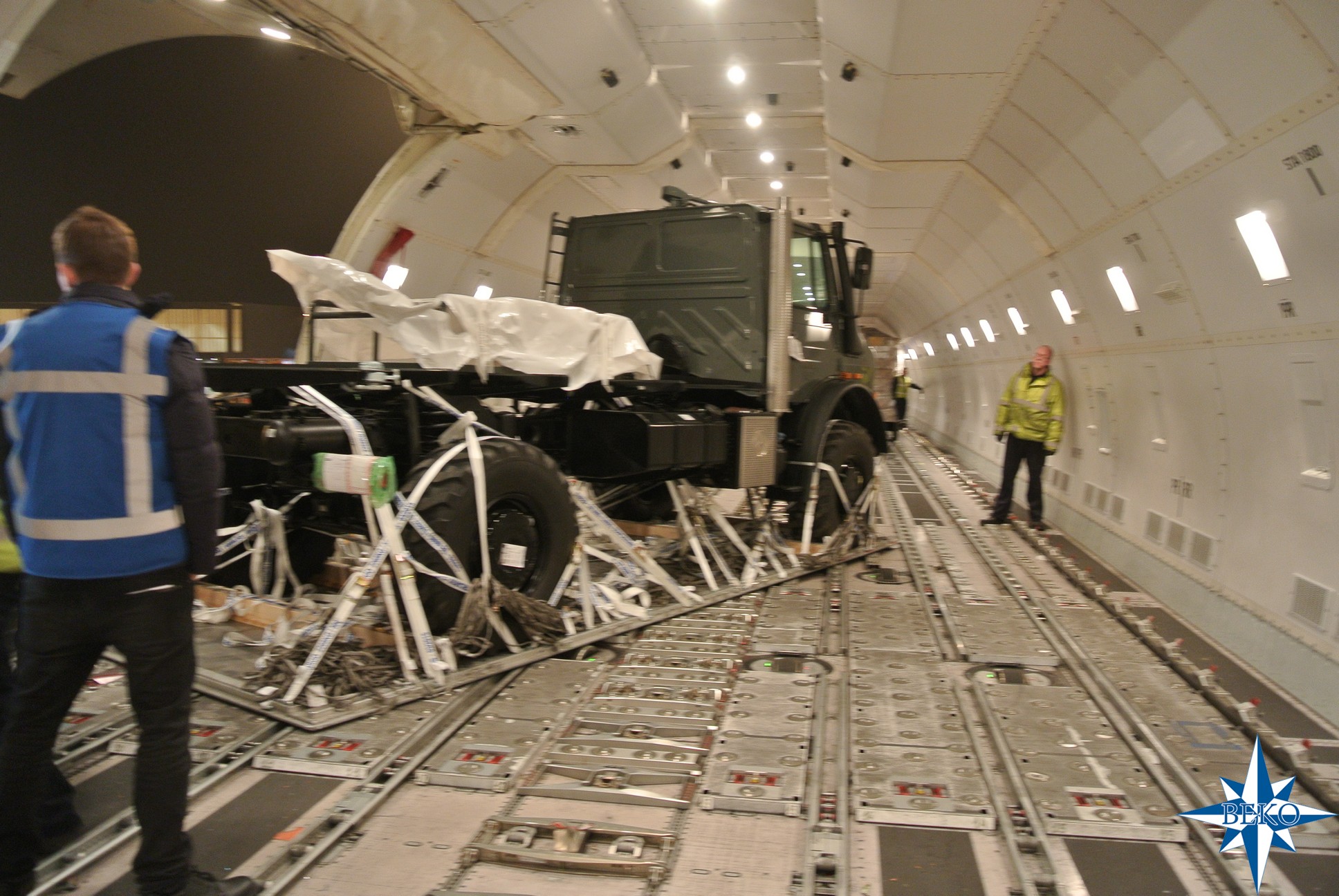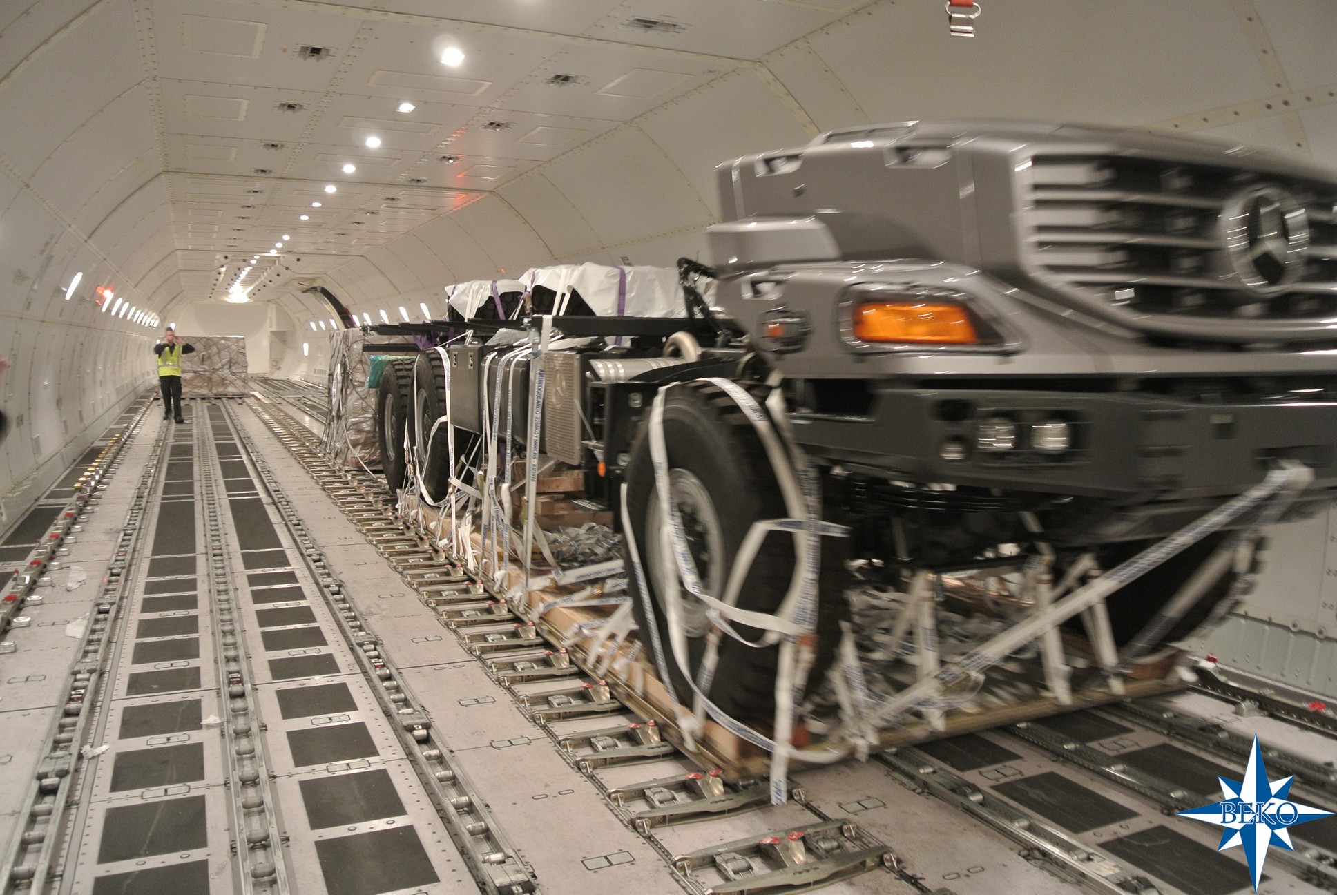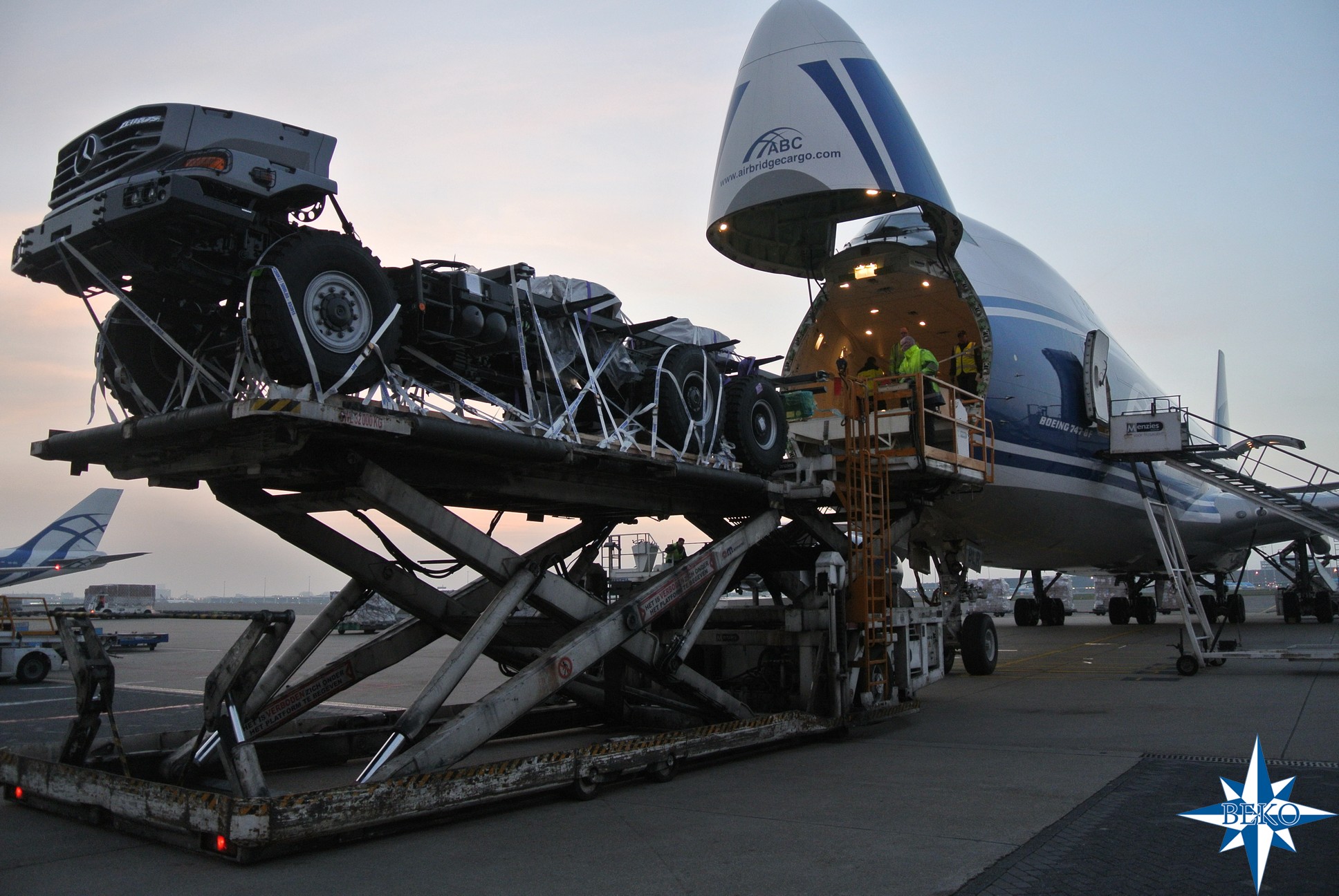 Voor een Duitse opdrachtgever moesten we luchtvracht verzorgen van Amsterdam naar Shanghai. Daar de voertuigen te hoog waren voor het normale vrachtvliegtuig hebben we de beide trucks eerst laten demonteren zodat ze zonder problemen konden vliegen.