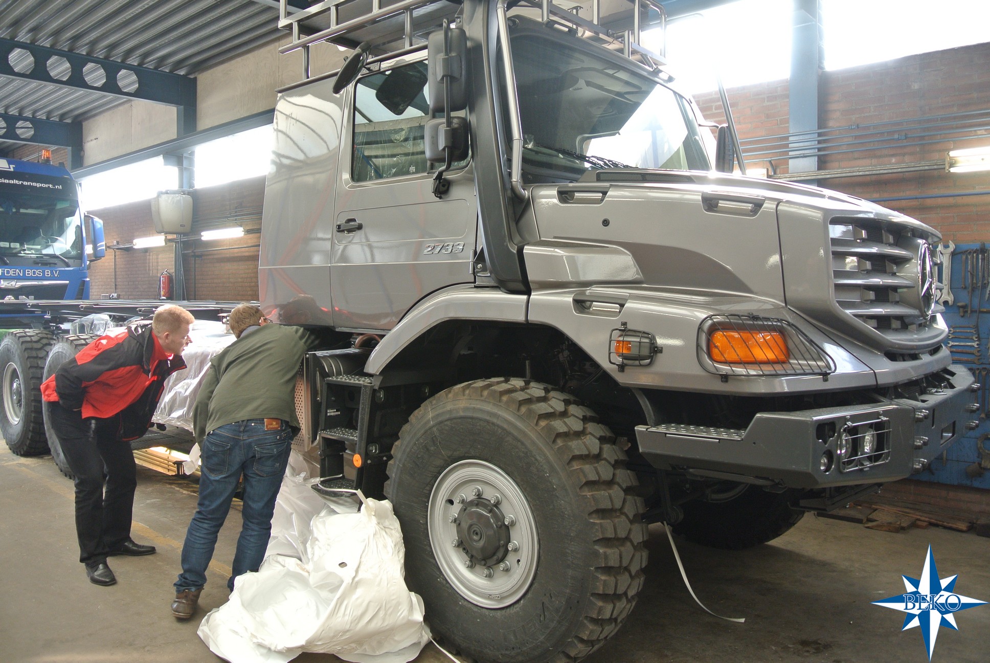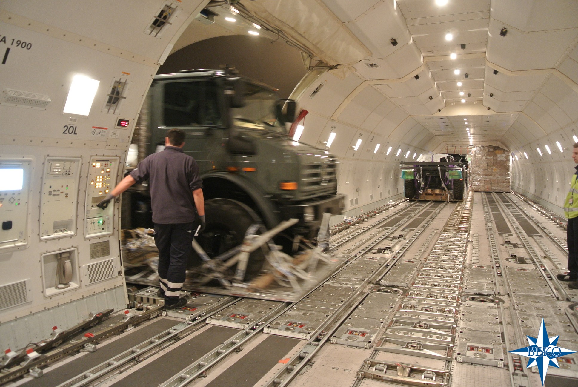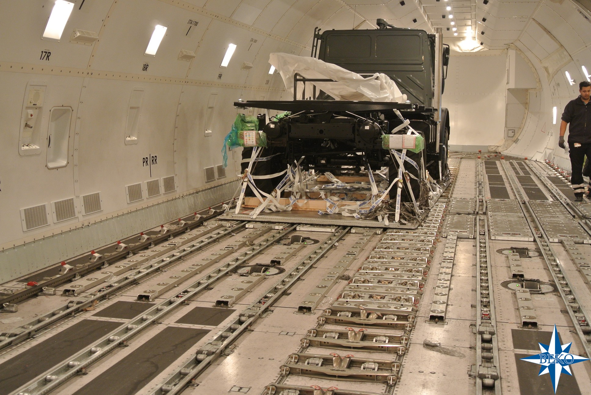 Voor een Duitse opdrachtgever moesten we luchtvracht verzorgen van Amsterdam naar Shanghai. Daar de voertuigen te hoog waren voor het normale vrachtvliegtuig hebben we de beide trucks eerst laten demonteren zodat ze zonder problemen konden vliegen.