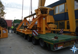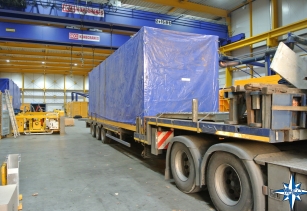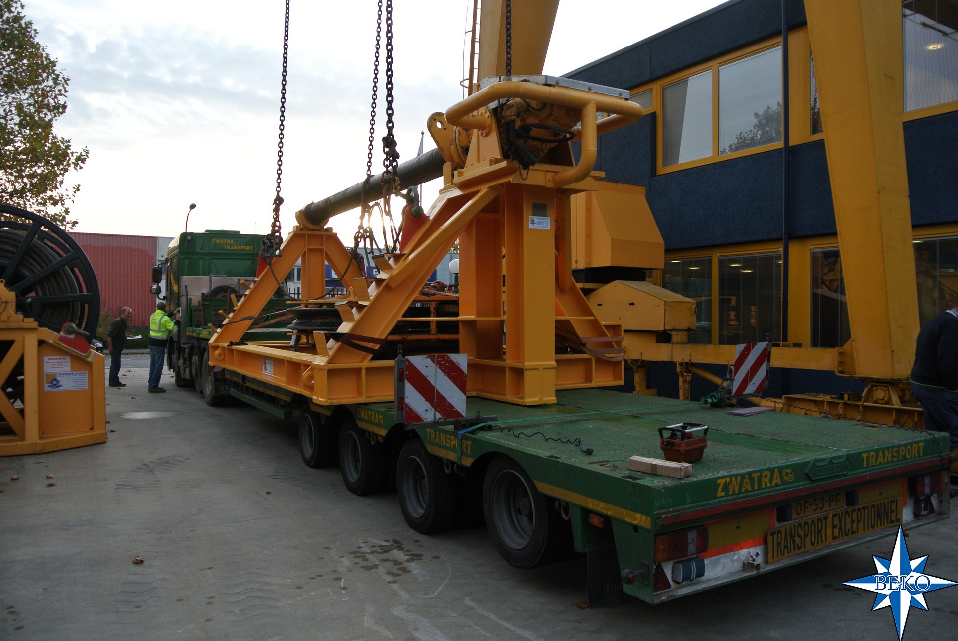 Eerste twee vrachtwagens van zeven geladen voor transport naar Antwerpen met eindbestemming Egypte.