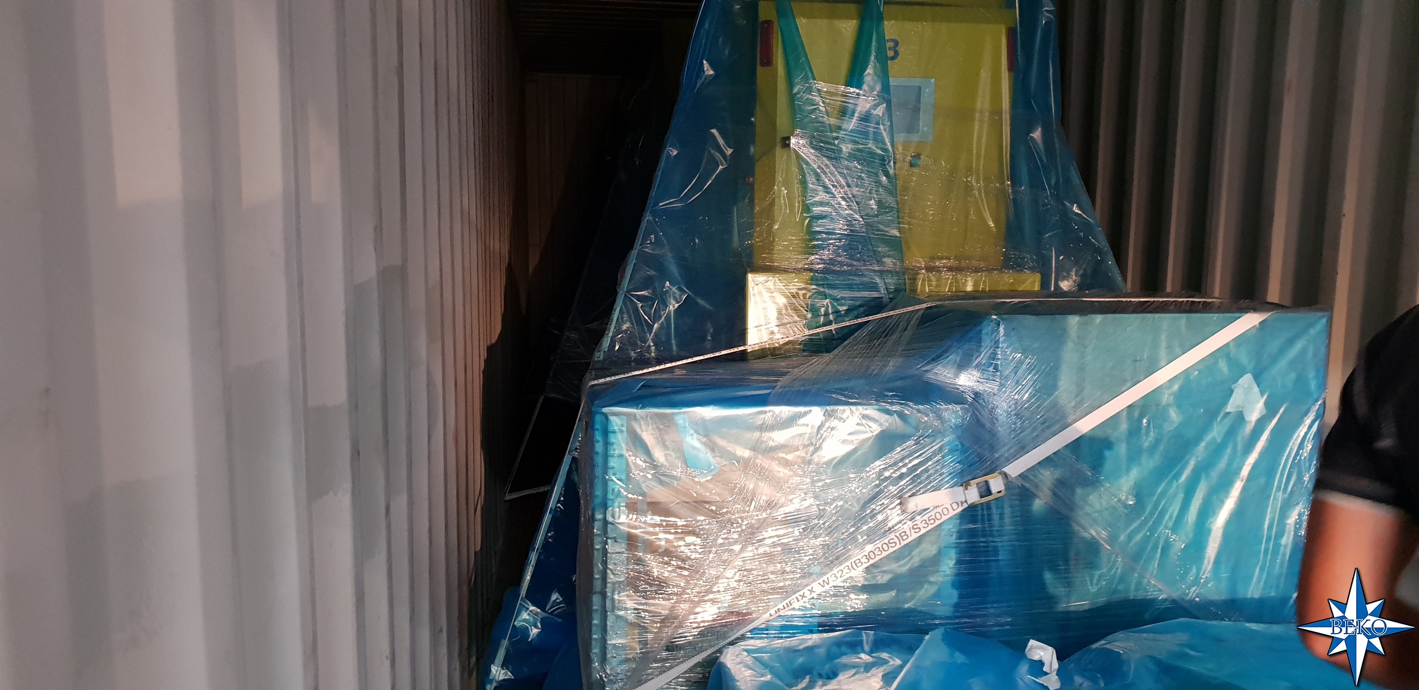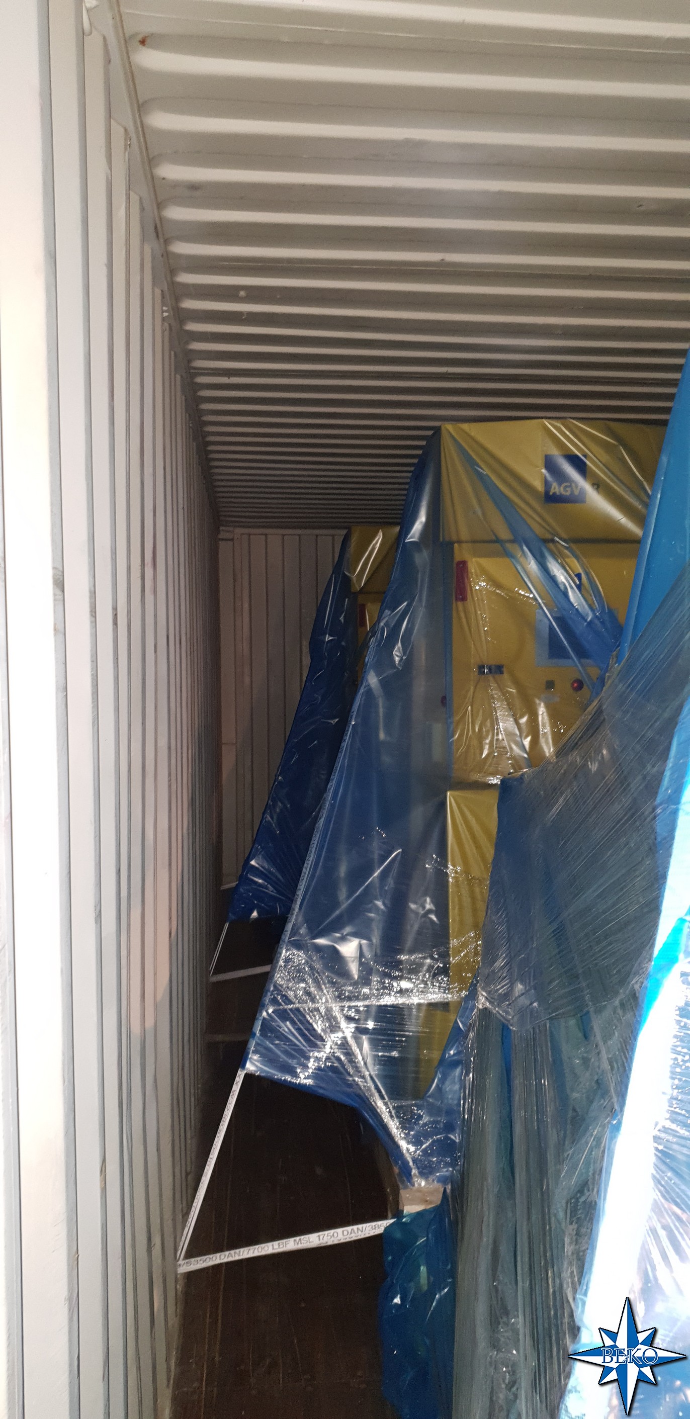 De lading moest volledig verpakt en vastgezet worden in de 40’ cntr. .