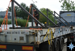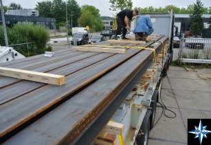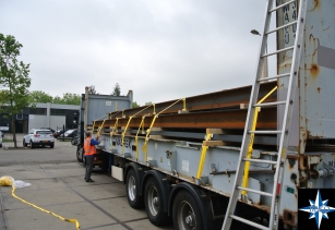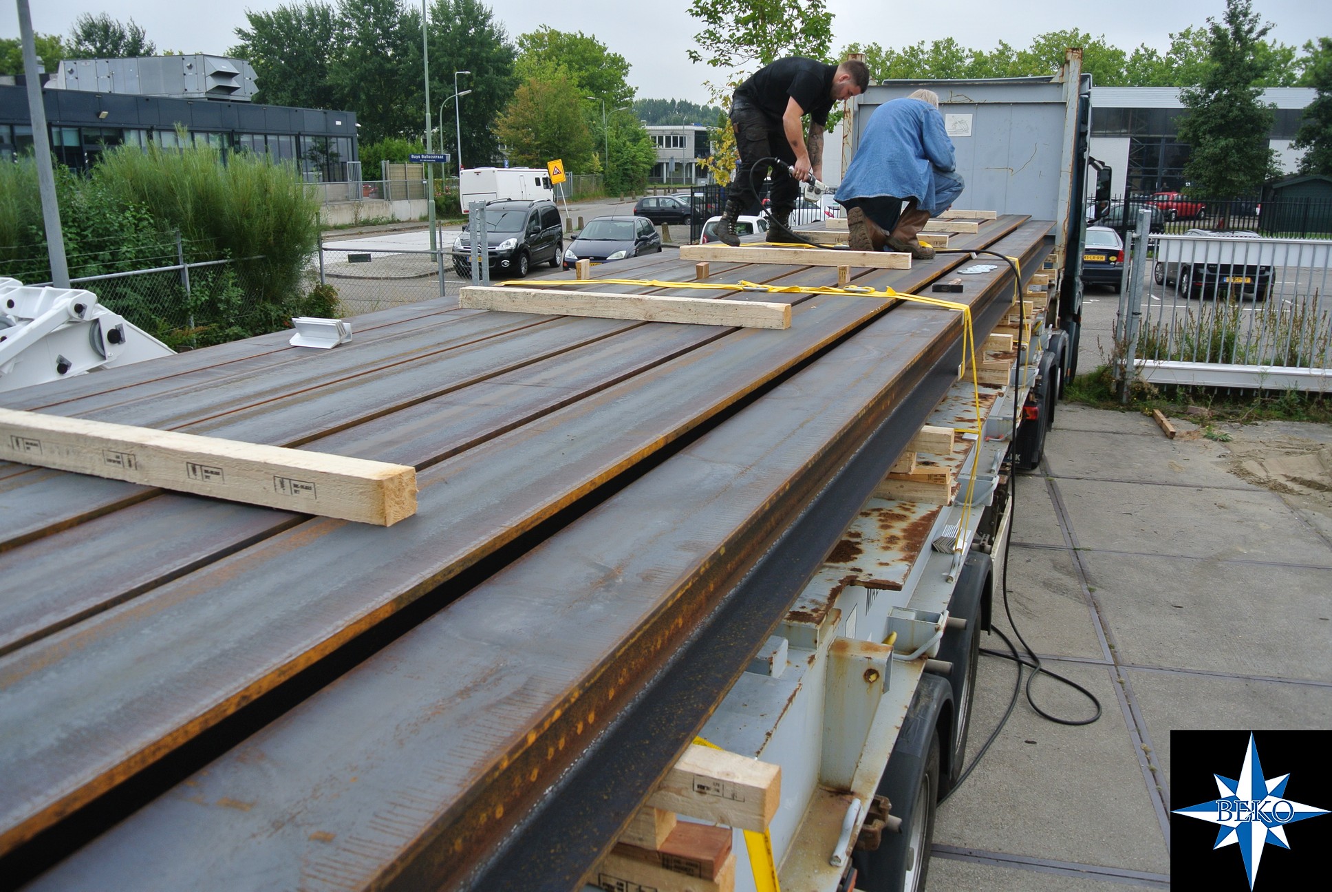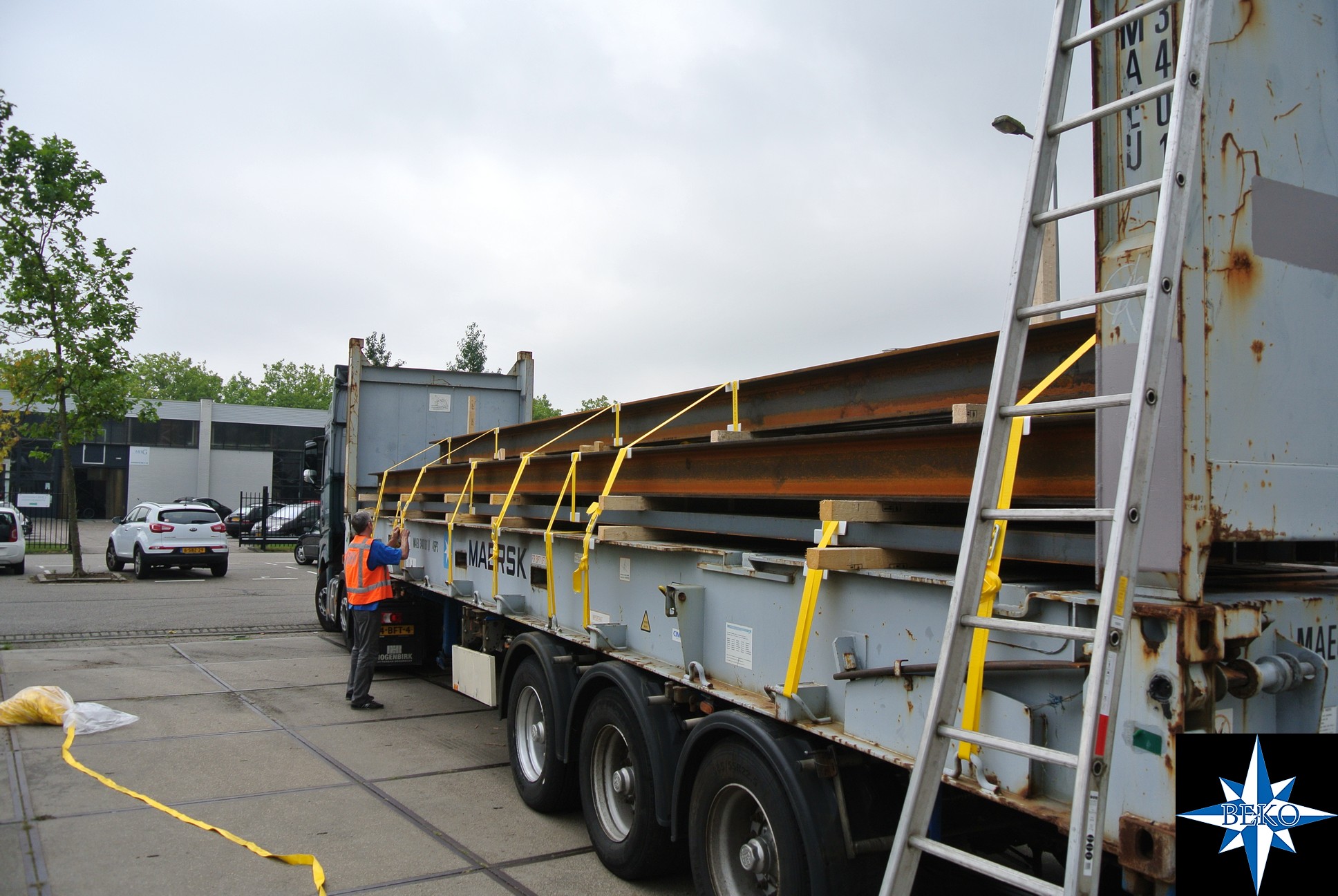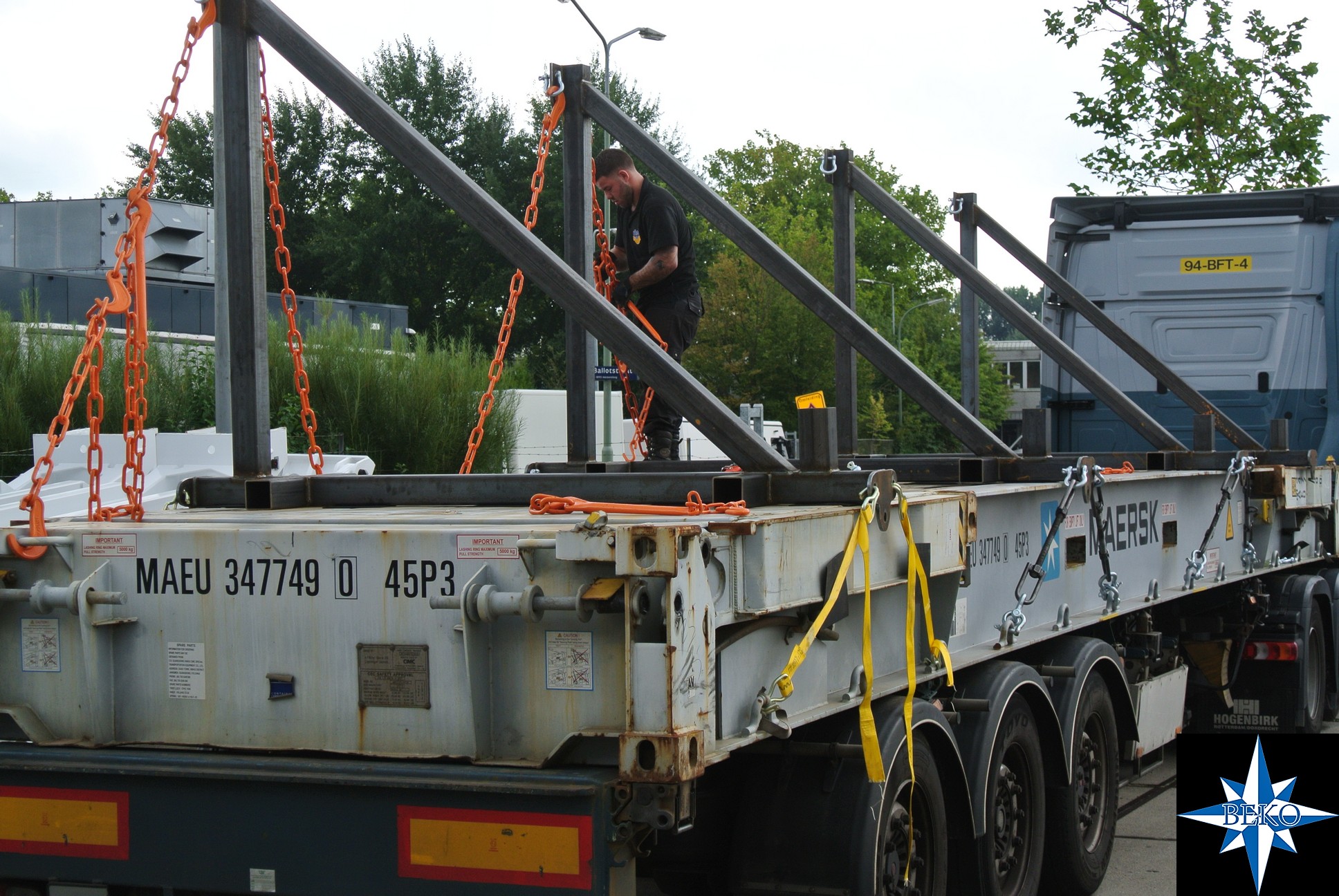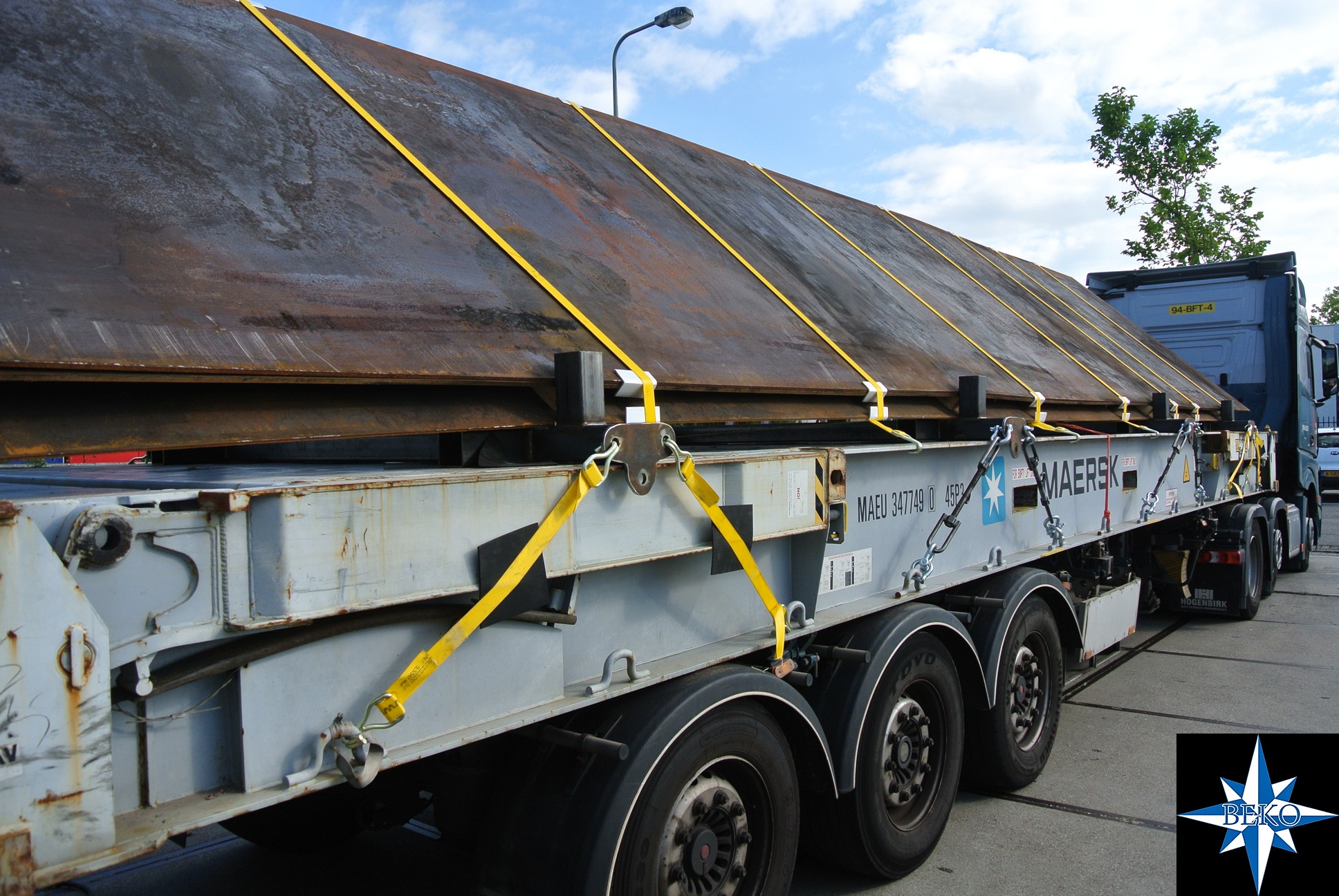 Beko mocht het transport voor een goede relatie verzorgen van 3 x 40’ flats. Vanwege de afmetingen van enkele platen staal konden deze normaal niet op een 40’ flat.