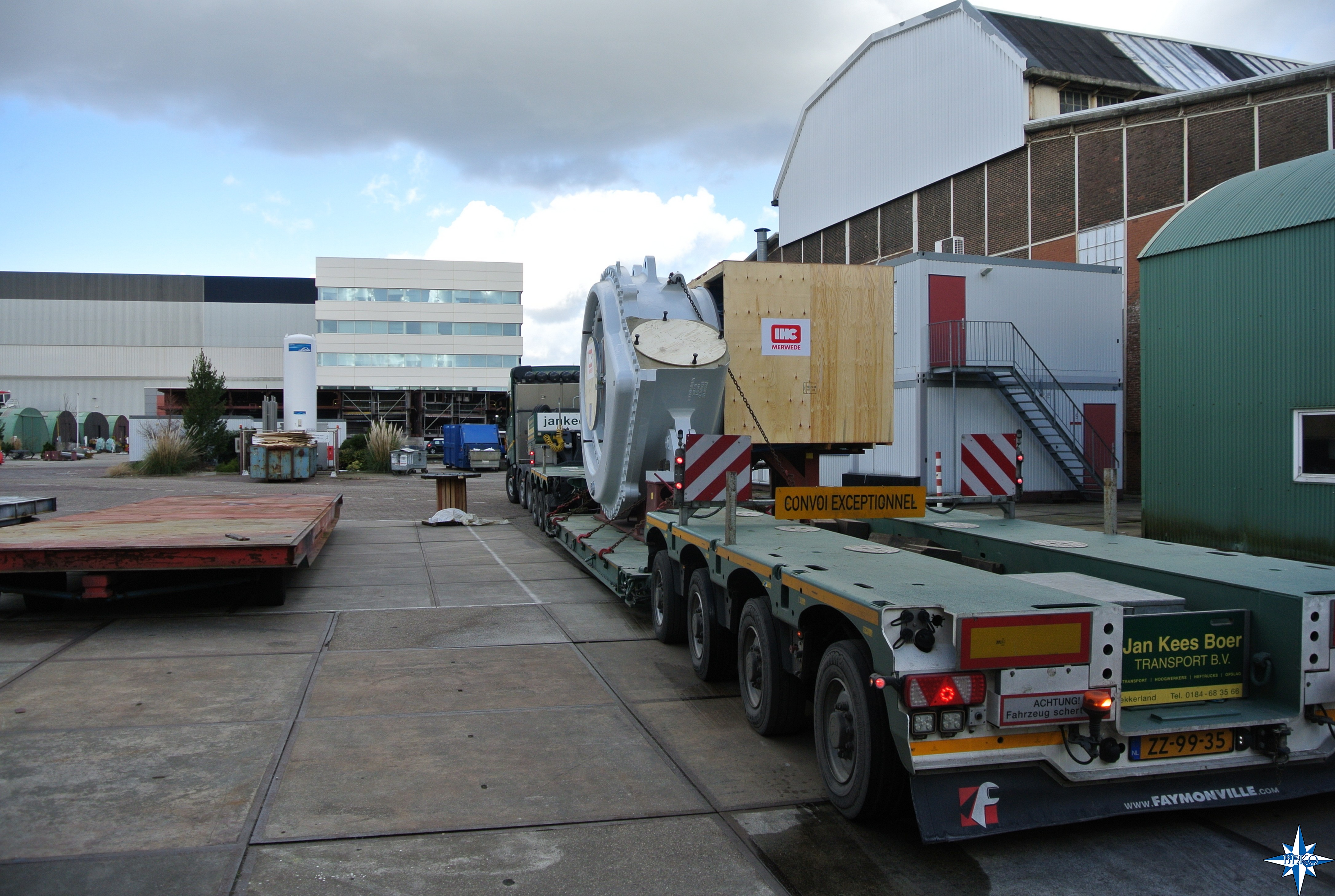 Deze week begonnen met transport van 2 baggerpompen van 63 ton elk vanaf de fabricagehal naar Antwerpen.
