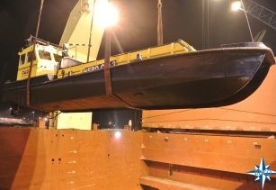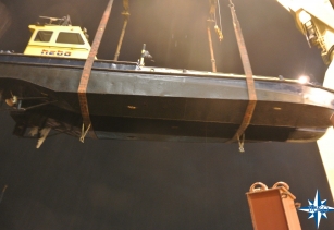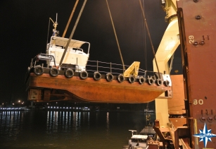 Voor een van onze regelmatige klanten mochten we weer het transport verzorgen van een vaartuig . Het vaartuig is op eigen kiel naar Antwerpen gevaren waar het met de scheepskraan aan boord ging van de Atlantic Patriot met bestemming Pointe Noire Congo.